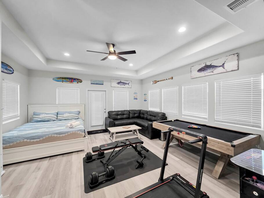 Oceandreamz & Poodreamz Combined! Two Beachfront Mansions Right Next To Each Other! Both homes are equipped with cargo lifts which are perfect for limited mobility guests. It also helps get your luggage into the homes! Oceandreamz has 8 total bedrooms - 6 king bedrooms - 4 king master en suite bedrooms - 1 queen x4 en suite bedroom and 18 beds total! 55" smart tvs in all bedrooms. 65" smart tvs in the living rooms. 3 living rooms with plenty of seating plus an additional 3rd story game room! Pooldreamz has 5 total bedrooms - 4 King bedrooms - 2 king master en suite bedrooms - 1 queen x 8 en suite bedroom and 12 beds total! 55" smart tvs in all bedrooms. 75" smart tvs in the living rooms. 2 living rooms with plenty of seating and a game room! Fully stocked kitchens with everything you'll need to cook huge meals for many! Both kitchens combined have three ovens, three refrigerators, 5 ice makers (3 in freezers plus 2 stand alone on the counters), 3 microwaves , and two dishwashers. Both homes are equipped with TWO sets of washers and dryers! 4 SETS TOTAL! 3rd story (oceandreamz) & 2nd story (pooldreamz) game rooms offer amazing ocean views, as well as 65" & 75" smart tvs, mini fridges, pool tables, arcade game tables, and fitness equipment (treadmills, dumbbells, yoga mats, jump ropes, and ab rollers). There is also a desk and chair for any business needs per house! All decks are furnished with ample outdoor furniture for your lounging pleasure. Each home also has two outdoor gas grills (4 total) for all of your outdoor cooking needs! Under each home you will find mini putt putt, an outdoor shower, huge outdoor bar area with wifi alexa speaker, 65" & 55" outdoor tvs, ping pong table, sets of bags games, one washers game, one ladder toss game, two outdoor fans, mini fridge, and plenty of outdoor seating. The entire area under each house and back yard is fully fenced for your privacy and pets! It is also beautifully landscaped with multiple palm trees! 3 HOT TUBS TOTAL! Oceandreamz has two hot tubs. One is located on the main deck overlooking the ocean and the other is located next to the bar under the home. Pooldreamz has one hot tub on the main deck overlooking the ocean. Each backyard is built out with an amazing outdoor firepit with 15 chairs surrounding! (Firepit wood is provided for both houses). There is also a full playground set as well as a heated/cooled salt water pool over looking the ocean per backyard! Each pool deck has private gates that can be locked for safety. Each pool also has a removable volleyball net as well as a basketball hoop! Each backyard also has a gate adjoining the two backyards together as well as private beach access. The homes have outdoor security cameras but they are disarmed during each stay. There are no camera inside the home. ***Event fee sometimes applies. We offer a beach package that can be rented for $250 per night. This must be rented for the entire stay of your trip. The beach package includes sand toys, #4 10x10 outdoor canopy's, #4 Frisbees, #4 water footballs, #8 skim boards. #8 bodyboards, #44 beach chairs, and 2 JBL Extreme 2 portable Bluetooth speakers. We also offer 2 6 seater golf carts with built in Bluetooth speakers. Both must be rented at once for this property. The golf carts can be rented for $400 per night. The golf carts must be rented for the entire stay of your trip. (2 golf carts total) We would love for you to enjoy Oceandreamz & Pooldreamz with your family and friends! *After booking, a rental agreement will be sent to you via email, using DocuSign, for your signature. * A security deposit of $1000 will be due immediately after booking. If nothing is broken, damaged, or missing, this is refunded within 72 hours of checkout minus a $100 processing fee.