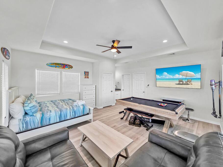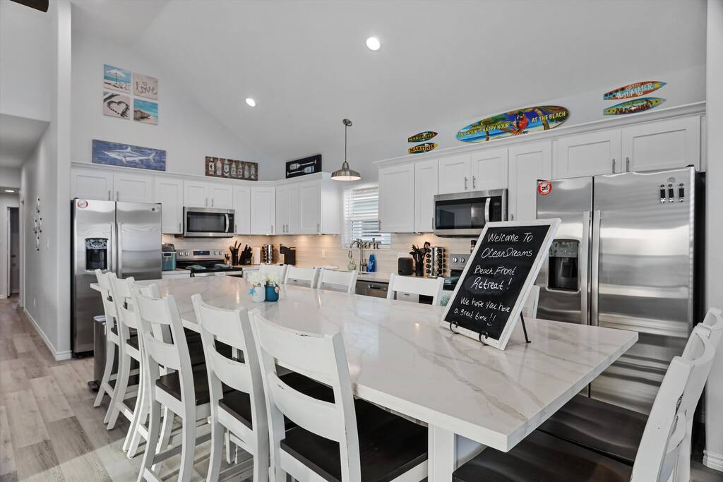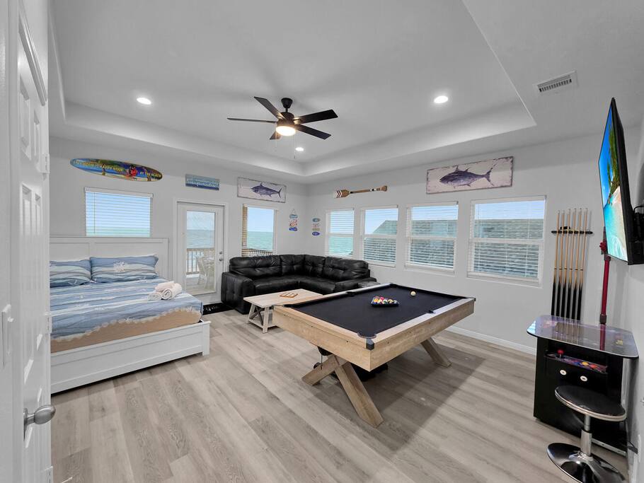 Oceandreamz & Poodreamz & Seadreamz Combined! Three Beachfront Mansions Right Next To Each Other! All three homes are equipped with cargo lifts, which are perfect for limited mobility guests. It also helps get your luggage into the homes! Oceandreamz has 8 total bedrooms - 6 king bedrooms - 4 king master en suite bedrooms - 1 queen x4 en suite bedroom and 18 beds total! 55" smart tvs in all bedrooms. 65" smart tvs in the living rooms. 3 living rooms with plenty of seating plus an additional 3rd story game room! Pooldreamz has 5 total bedrooms - 4 King bedrooms - 2 king master en suite bedrooms - 1 queen x 8 en suite bedroom and 12 beds total! 55" smart tvs in all bedrooms. 75" smart tvs in the living rooms. 2 living rooms with plenty of seating and a game room! Seadreamz has 5 total bedrooms - 4 King bedrooms - 2 king master en suite bedrooms - 1 queen x 8 en suite bedroom and 12 beds total! 55" smart tvs in all bedrooms. 75" smart tvs in the living rooms. 2 living rooms with plenty of seating and a game room! Fully stocked kitchens with everything you'll need to cook huge meals for many! Three kitchens combined have four ovens, four refrigerators, 7 ice makers (4 in freezers plus 3 stand alone on the counters), 4 microwaves , and three dishwashers. All three homes are equipped with TWO sets of washers and dryers! 6 SETS TOTAL! 3rd story (oceandreamz) & 2nd story (pooldreamz & Seadreamz) game rooms offer amazing ocean views, as well as 65" & 75" smart tvs, mini fridges, pool tables, arcade game tables, and fitness equipment (treadmills, dumbbells, yoga mats, jump ropes, and ab rollers). There is also a desk and chair for any business needs per house! All decks are furnished with ample outdoor furniture for your lounging pleasure. Each home also has two outdoor gas grills (6 total) for all of your outdoor cooking needs! Under each home you will find mini putt putt, an outdoor shower, huge outdoor bar area with wifi alexa speaker, 65" & 55" outdoor tvs, ping pong table, sets of bags games, one washers game, one ladder toss game, two outdoor fans, mini fridge, and plenty of outdoor seating. The entire area under each house and back yard is fully fenced for your privacy and pets! It is also beautifully landscaped with multiple palm trees! 4 HOT TUBS TOTAL! Oceandreamz has two hot tubs. One is located on the main deck overlooking the ocean and the other is located next to the bar under the home. Pooldreamz has one hot tub on the main deck overlooking the ocean. Seadreamz has one hot tub on the main deck overlooking the ocean. Each backyard is built out with an amazing outdoor firepit with 15 chairs surrounding! (Firepit wood is provided for all 3 houses). There is also a full playground set as well as a heated/cooled salt water pool over looking the ocean per backyard! Each pool deck has private gates that can be locked for safety. Each pool also has a removable volleyball net as well as a basketball hoop! Each backyard also has a gate adjoining the other backyards together as well as private beach access. The homes have outdoor security cameras but they are disarmed during each stay. There are no camera inside the home. ***Event fee sometimes applies. We offer a beach package that can be rented for $375 per night. This must be rented for the entire stay of your trip. The beach package includes sand toys, #6 10x10 outdoor canopy's, #6 Frisbees, #6 water footballs, #12 skim boards. #12 bodyboards, #64 beach chairs, and 3 JBL Extreme 2 portable Bluetooth speakers. We also offer 3 6 seater golf carts with built in Bluetooth speakers. All three must be rented at once for this property. The golf carts can be rented for $600 per night. The golf carts must be rented for the entire stay of your trip. (3 golf carts total) We would love for you to enjoy Oceandreamz & Pooldreamz & Seadreamz with your family and friends! *After booking, a rental agreement will be sent to you via email, using DocuSign, for your signature. * A security deposit of $1500 will be due immediately after booking. If nothing is broken, damaged, or missing, this is refunded within 72 hours of checkout minus a $150 processing fee.