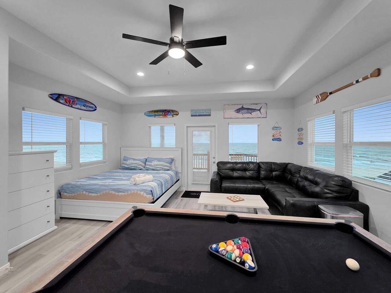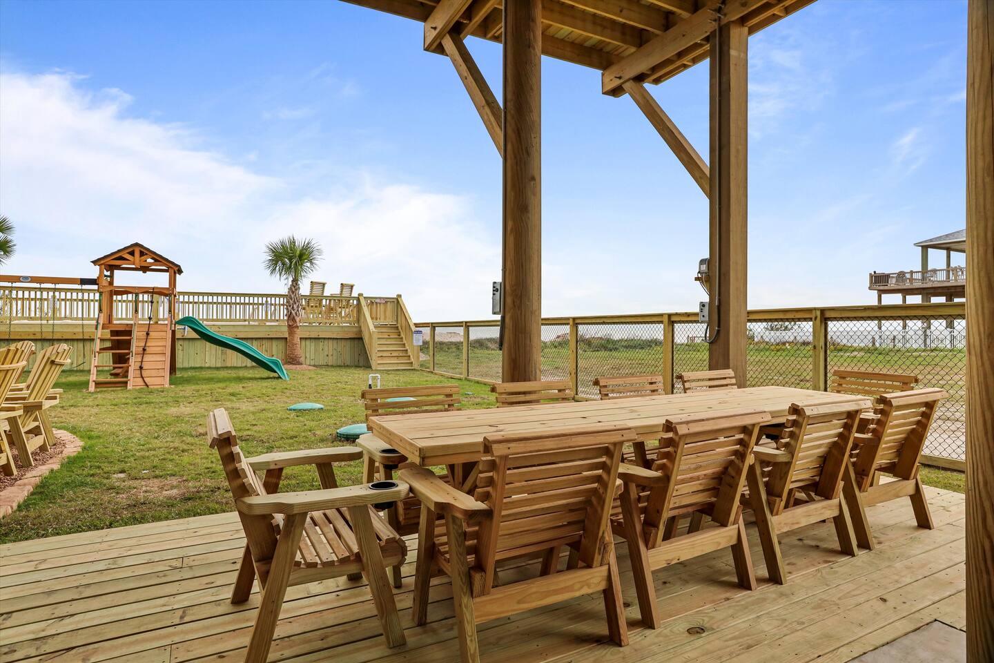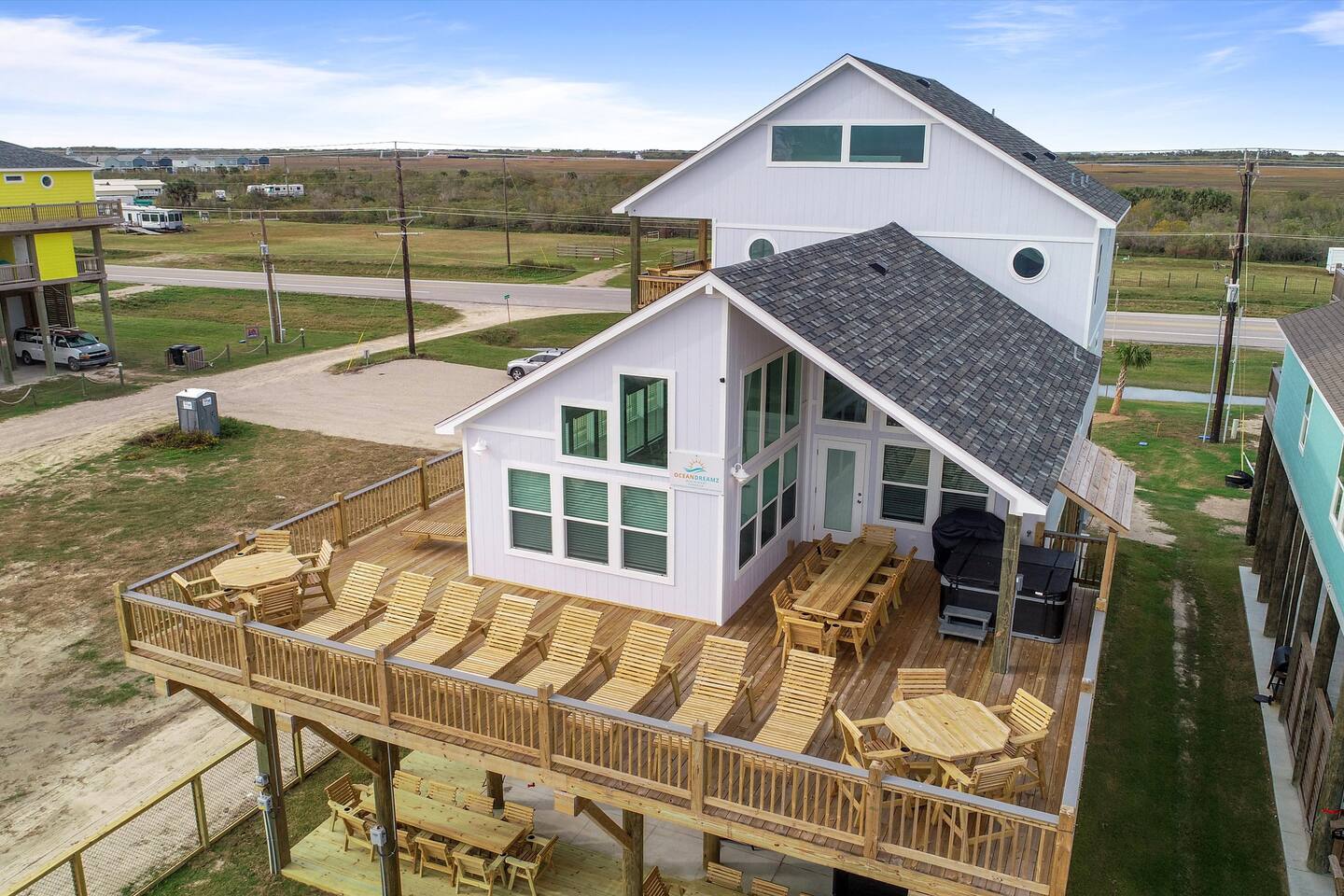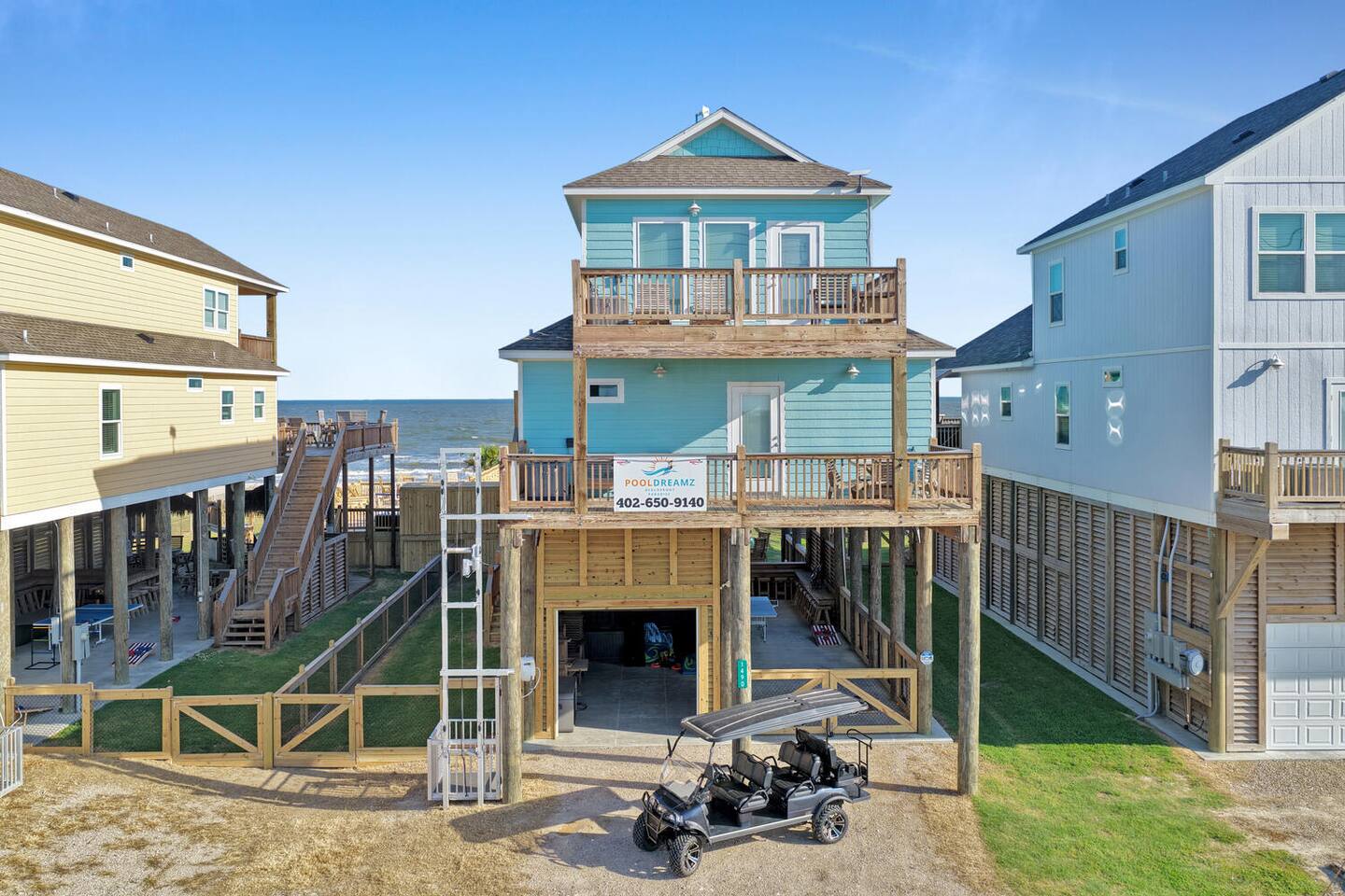 Oceandreamz & Poodreamz Combined! Two Beachfront Mansions Right Next To Each Other! Both homes are equipped with cargo lifts which are perfect for limited mobility guests. It also helps get your luggage into the homes! Oceandreamz has 8 total bedrooms - 6 king bedrooms - 4 king master en suite bedrooms - 1 queen x4 en suite bedroom and 18 beds total! 55" smart tvs in all bedrooms. 65" smart tvs in the living rooms. 3 living rooms with plenty of seating plus an additional 3rd story game room! Pooldreamz has 5 total bedrooms - 4 King bedrooms - 2 king master en suite bedrooms - 1 queen x 8 en suite bedroom and 12 beds total! 55" smart tvs in all bedrooms. 75" smart tvs in the living rooms. 2 living rooms with plenty of seating and a game room! Fully stocked kitchens with everything you'll need to cook huge meals for many! Both kitchens combined have three ovens, three refrigerators, 5 ice makers (3 in freezers plus 2 stand alone on the counters), 3 microwaves , and two dishwashers. Both homes are equipped with TWO sets of washers and dryers! 4 SETS TOTAL! 3rd story (oceandreamz) & 2nd story (pooldreamz) game rooms offer amazing ocean views, as well as 65" & 75" smart tvs, mini fridges, pool tables, arcade game tables, and fitness equipment (treadmills, dumbbells, yoga mats, jump ropes, and ab rollers). There is also a desk and chair for any business needs per house! All decks are furnished with ample outdoor furniture for your lounging pleasure. Each home also has two outdoor gas grills (4 total) for all of your outdoor cooking needs! Under each home you will find mini putt putt, an outdoor shower, huge outdoor bar area with wifi alexa speaker, 65" & 55" outdoor tvs, ping pong table, sets of bags games, one washers game, one ladder toss game, two outdoor fans, mini fridge, and plenty of outdoor seating. The entire area under each house and back yard is fully fenced for your privacy and pets! It is also beautifully landscaped with multiple palm trees! 3 HOT TUBS TOTAL! Oceandreamz has two hot tubs. One is located on the main deck overlooking the ocean and the other is located next to the bar under the home. Pooldreamz has one hot tub on the main deck overlooking the ocean. Each backyard is built out with an amazing outdoor firepit with 15 chairs surrounding! (Firepit wood is provided for both houses). There is also a full playground set as well as a heated/cooled salt water pool over looking the ocean per backyard! Each pool deck has private gates that can be locked for safety. Each pool also has a removable volleyball net as well as a basketball hoop! Each backyard also has a gate adjoining the two backyards together as well as private beach access. The homes have outdoor security cameras but they are disarmed during each stay. There are no camera inside the home. ***Event fee sometimes applies. We offer a beach package that can be rented for $250 per night. This must be rented for the entire stay of your trip. The beach package includes sand toys, #4 10x10 outdoor canopy's, #4 Frisbees, #4 water footballs, #8 skim boards. #8 bodyboards, #44 beach chairs, and 2 JBL Extreme 2 portable Bluetooth speakers. We also offer 2 6 seater golf carts with built in Bluetooth speakers. Both must be rented at once for this property. The golf carts can be rented for $400 per night. The golf carts must be rented for the entire stay of your trip. (2 golf carts total) We would love for you to enjoy Oceandreamz & Pooldreamz with your family and friends! *After booking, a rental agreement will be sent to you via email, using DocuSign, for your signature. * A security deposit of $1000 will be due immediately after booking. If nothing is broken, damaged, or missing, this is refunded within 72 hours of checkout minus a $100 processing fee.