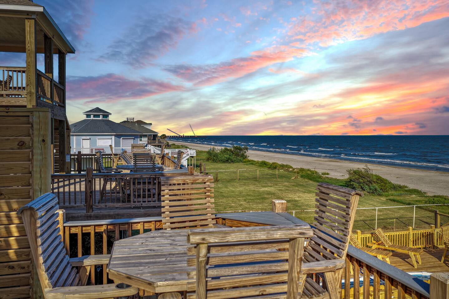 2 Beachfront Houses right next to each other! One of a kind beachfront complex! Sleeps 56! Multimillion dollar beachfront mansion complex perfect for large groups and weddings with an extra lot next door for ample parking! Unobstructed ocean views of Gulf of America. 2 Heated SALT WATER POOLS overlooking the OCEAN! 3 Hot tubs! Pet Friendly!Fast Starlink Internet!Smart Alexa speakers.Putt Putt Golf! Infinity game table.Multi Arcade Game Table.Pool Tables. Ping Pong. Fitness!Firepits!Playgrounds!