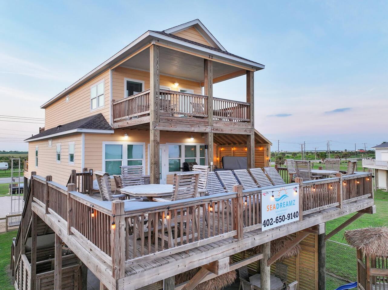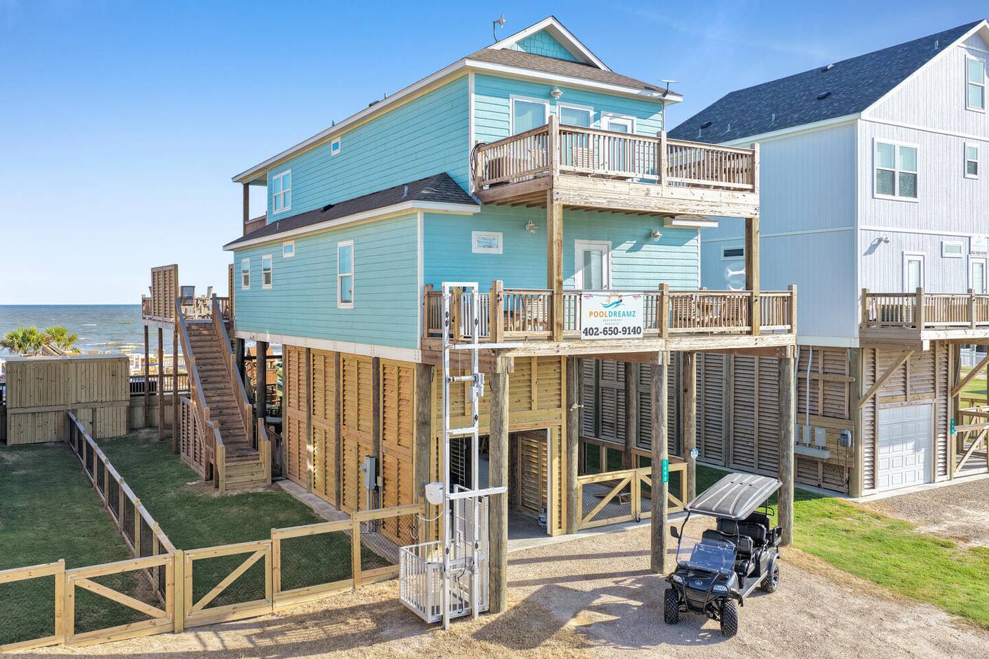 Oceandreamz & Poodreamz & Seadreamz Combined! Three Beachfront Mansions Right Next To Each Other! All three homes are equipped with cargo lifts, which are perfect for limited mobility guests. It also helps get your luggage into the homes! Oceandreamz has 8 total bedrooms - 6 king bedrooms - 4 king master en suite bedrooms - 1 queen x4 en suite bedroom and 18 beds total! 55" smart tvs in all bedrooms. 65" smart tvs in the living rooms. 3 living rooms with plenty of seating plus an additional 3rd story game room! Pooldreamz has 5 total bedrooms - 4 King bedrooms - 2 king master en suite bedrooms - 1 queen x 8 en suite bedroom and 12 beds total! 55" smart tvs in all bedrooms. 75" smart tvs in the living rooms. 2 living rooms with plenty of seating and a game room! Seadreamz has 5 total bedrooms - 4 King bedrooms - 2 king master en suite bedrooms - 1 queen x 8 en suite bedroom and 12 beds total! 55" smart tvs in all bedrooms. 75" smart tvs in the living rooms. 2 living rooms with plenty of seating and a game room! Fully stocked kitchens with everything you'll need to cook huge meals for many! Three kitchens combined have four ovens, four refrigerators, 7 ice makers (4 in freezers plus 3 stand alone on the counters), 4 microwaves , and three dishwashers. All three homes are equipped with TWO sets of washers and dryers! 6 SETS TOTAL! 3rd story (oceandreamz) & 2nd story (pooldreamz & Seadreamz) game rooms offer amazing ocean views, as well as 65" & 75" smart tvs, mini fridges, pool tables, arcade game tables, and fitness equipment (treadmills, dumbbells, yoga mats, jump ropes, and ab rollers). There is also a desk and chair for any business needs per house! All decks are furnished with ample outdoor furniture for your lounging pleasure. Each home also has two outdoor gas grills (6 total) for all of your outdoor cooking needs! Under each home you will find mini putt putt, an outdoor shower, huge outdoor bar area with wifi alexa speaker, 65" & 55" outdoor tvs, ping pong table, sets of bags games, one washers game, one ladder toss game, two outdoor fans, mini fridge, and plenty of outdoor seating. The entire area under each house and back yard is fully fenced for your privacy and pets! It is also beautifully landscaped with multiple palm trees! 4 HOT TUBS TOTAL! Oceandreamz has two hot tubs. One is located on the main deck overlooking the ocean and the other is located next to the bar under the home. Pooldreamz has one hot tub on the main deck overlooking the ocean. Seadreamz has one hot tub on the main deck overlooking the ocean. Each backyard is built out with an amazing outdoor firepit with 15 chairs surrounding! (Firepit wood is provided for all 3 houses). There is also a full playground set as well as a heated/cooled salt water pool over looking the ocean per backyard! Each pool deck has private gates that can be locked for safety. Each pool also has a removable volleyball net as well as a basketball hoop! Each backyard also has a gate adjoining the other backyards together as well as private beach access. The homes have outdoor security cameras but they are disarmed during each stay. There are no camera inside the home. ***Event fee sometimes applies. We offer a beach package that can be rented for $375 per night. This must be rented for the entire stay of your trip. The beach package includes sand toys, #6 10x10 outdoor canopy's, #6 Frisbees, #6 water footballs, #12 skim boards. #12 bodyboards, #64 beach chairs, and 3 JBL Extreme 2 portable Bluetooth speakers. We also offer 3 6 seater golf carts with built in Bluetooth speakers. All three must be rented at once for this property. The golf carts can be rented for $600 per night. The golf carts must be rented for the entire stay of your trip. (3 golf carts total) We would love for you to enjoy Oceandreamz & Pooldreamz & Seadreamz with your family and friends! *After booking, a rental agreement will be sent to you via email, using DocuSign, for your signature. * A security deposit of $1500 will be due immediately after booking. If nothing is broken, damaged, or missing, this is refunded within 72 hours of checkout minus a $150 processing fee.