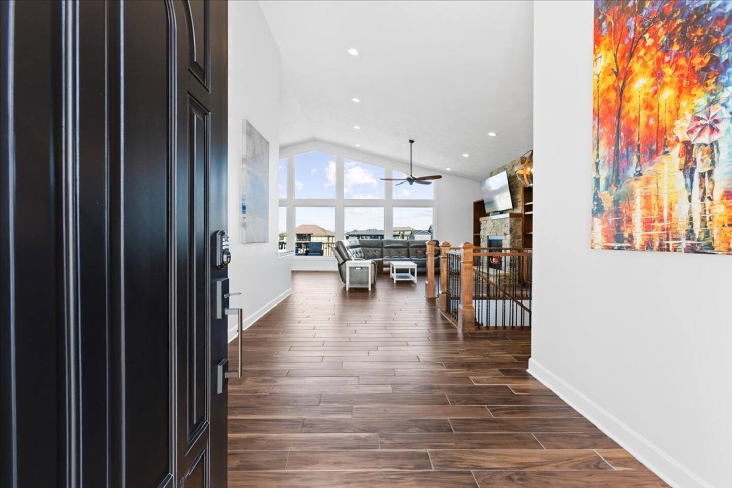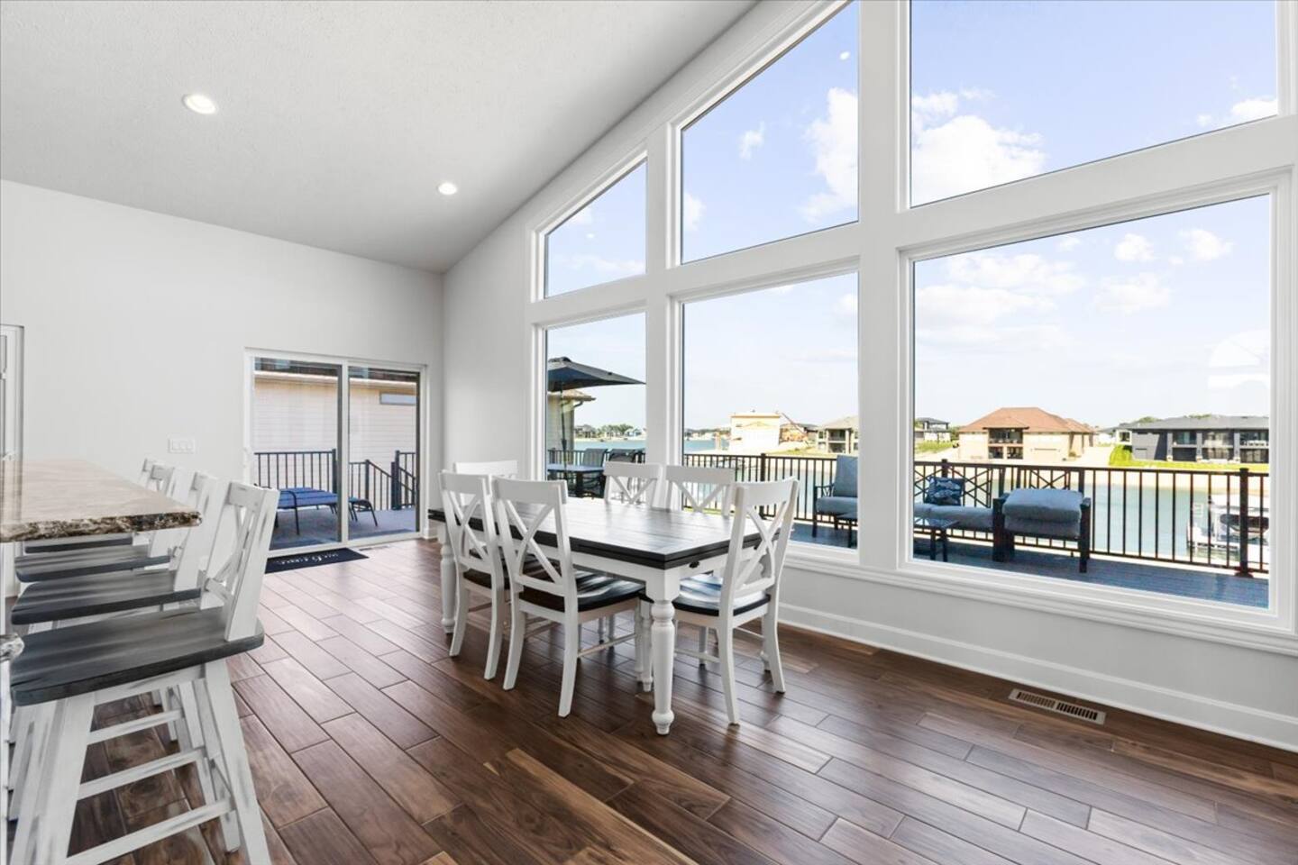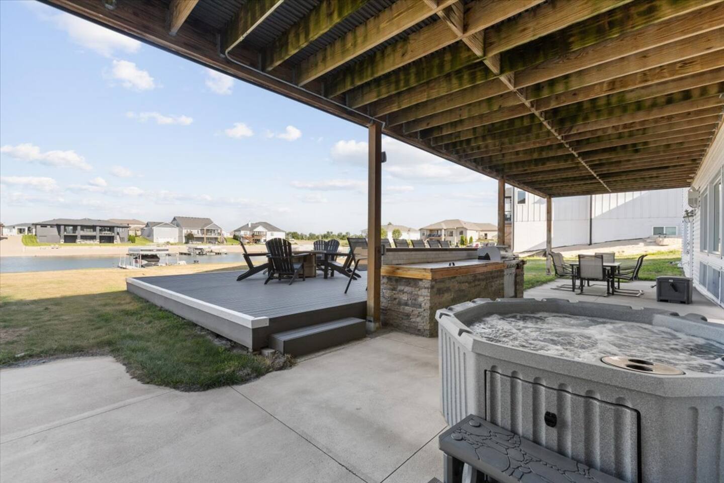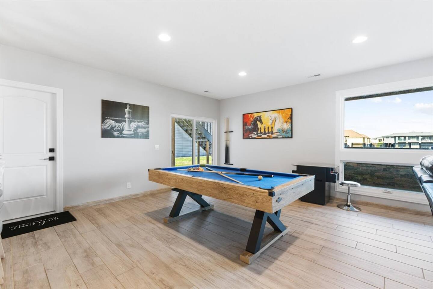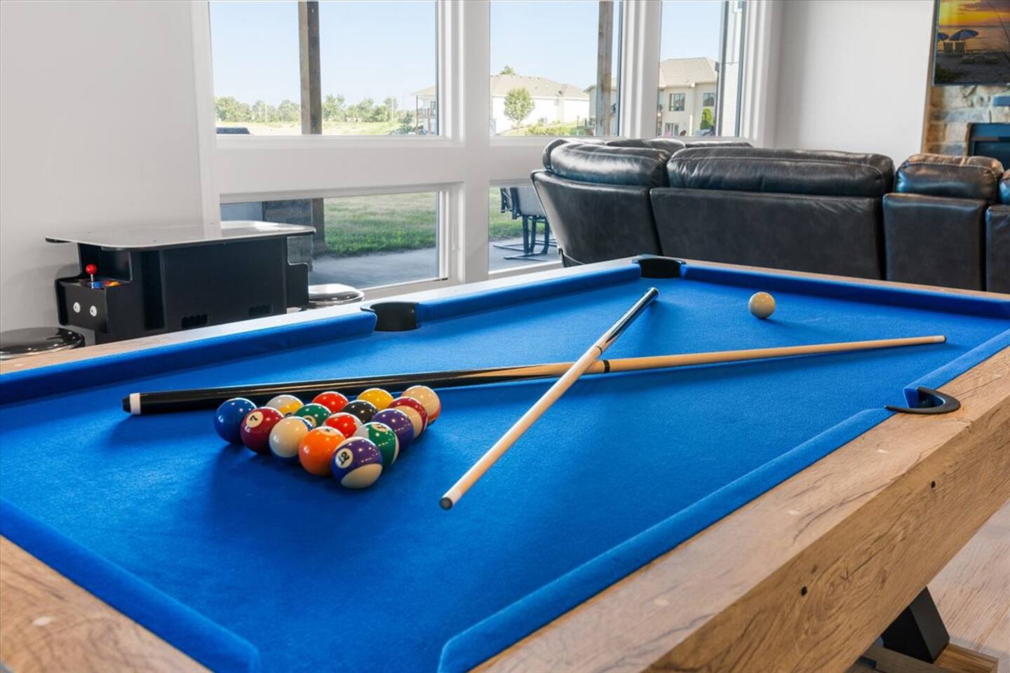 The house was designed with entertaining in mind! 4,200 sq ft Million dollar+ mansion in a safe gated community for your whole family to enjoy! Minutes away from tons of attractions like Mahoney State Park, Iron Horse, Quarry Oaks, the SAC Museum, and the Wildlife Safari Park! Conveniently located in-between Omaha and Lincoln! ALL KING BEDS! Yes, every bedroom has comfortable brand new king beds! Even the bunk beds are kings! The house was recently remodeled with all new paint, carpet, showers, furniture, fixtures, etc. Right when you walk in you'll notice the spacious tall ceilings and open floor plan with HUGE windows showcasing the amazing lake views! Every living room is furnished with a spacious L shaped sectional, smart tv, and Sonos sound system. The kitchen is equipped with high end appliances and all of the dishes and appliances you'll need to cook a big meal for the family! There is also enough kitchen seating for 11! The sun room boasts amazing lake views and great new furniture to enjoy your morning coffee! Downstairs you will find a huge living room with L shaped sectional, pool table, arcade game table, full Sonos sound, full wet bar with its own 75" tv, mini fridge, theatre room with reclining theatre seating for 6 and 100" tv with Sonos sound and sub! (alcohol not included with any rental) The entire house is equipped with Sonos sound. Including two Sonos Moves, that can be taken outside! Outside on the back deck you will find an outdoor dining table for 6 with sun shade, lounge chairs, ample outdoor seating including a huge outdoor L shaped couch! Under the deck and in the back yard you will find a 5 person hot tub, outdoor kitchen including propane grill, another 6 person dining table, gas fire pit, deck chairs, bar chairs, bag toss game, washer toss game, and ladder ball game! Bedrooms: Bedroom 1: Master bedroom on main level is huge and equipped with a king bed, dresser, 55" smart tv, ceiling fan and floor fan, huge en suite bathroom with heated floors and Jacuzzi tub and walk in shower plus a massive walk in closet! Bedroom 2: King bedroom on main level. Equipped with a 55" smart tv, ceiling fan, floor fan, and a closet for hanging clothes. Bedroom 3: King large bedroom downstairs. Equipped with 55' tv, dresser, two closets, ceiling fan, and floor fan. Bedroom 4: California King bunk beds in a room with the theater and the foosball table! Ceiling fan and floor fan as well! Come check out the amazing LAKE VIEWS! --- (Guests cannot use the lake. This is an HOA rule. Guests cannot swim or step foot in the lake. You may still use the back yard, just not the lake. Do not book this house if you want lake access. Thank you for understanding.) * A security deposit of $500 will be due immediately after booking. If nothing is broken, damaged, or missing, this is refunded within 72 hours of checkout minus a $50 processing fee.