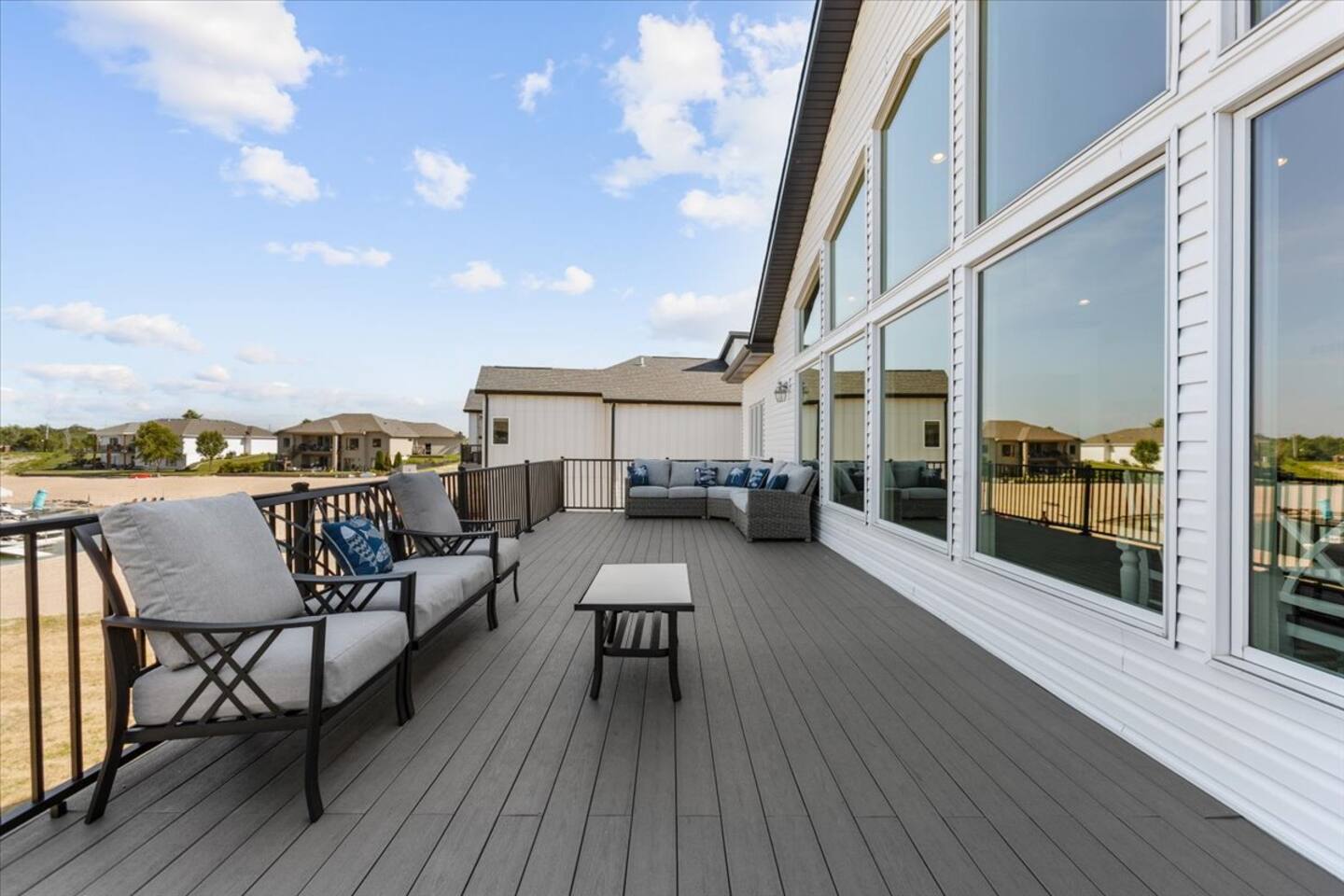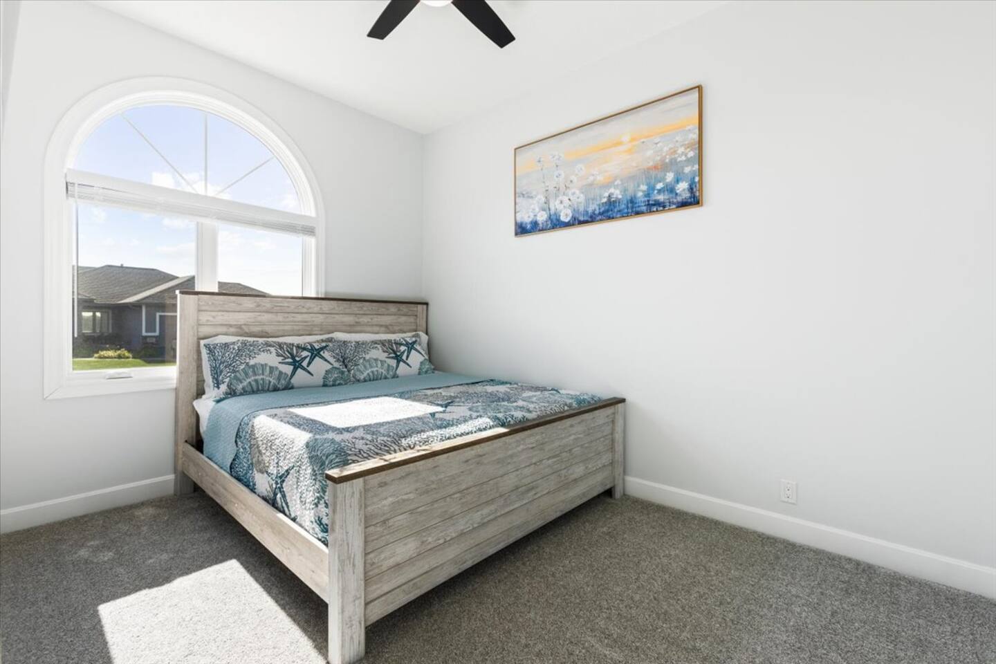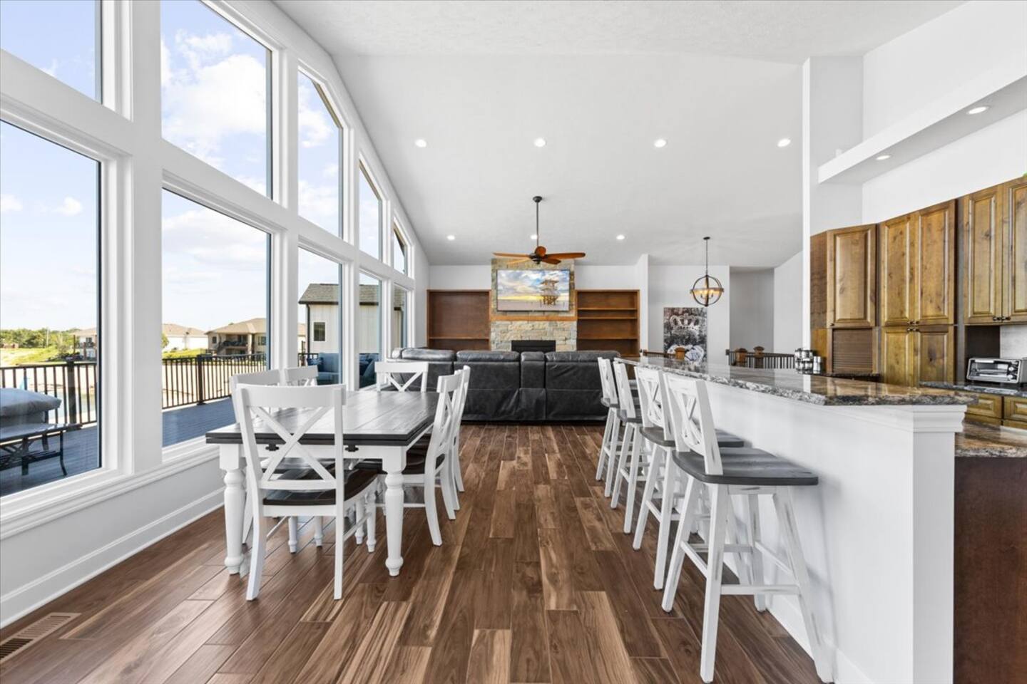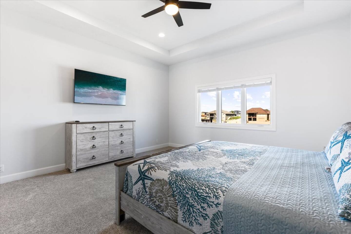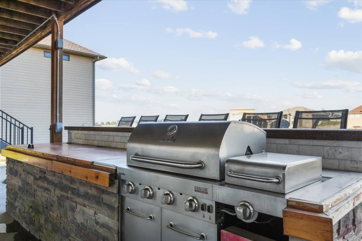 The house was designed with entertaining in mind! 4,200 sq ft Million dollar+ mansion in a safe gated community for your whole family to enjoy! Minutes away from tons of attractions like Mahoney State Park, Iron Horse, Quarry Oaks, the SAC Museum, and the Wildlife Safari Park! Conveniently located in-between Omaha and Lincoln! ALL KING BEDS! Yes, every bedroom has comfortable brand new king beds! Even the bunk beds are kings! The house was recently remodeled with all new paint, carpet, showers, furniture, fixtures, etc. Right when you walk in you'll notice the spacious tall ceilings and open floor plan with HUGE windows showcasing the amazing lake views! Every living room is furnished with a spacious L shaped sectional, smart tv, and Sonos sound system. The kitchen is equipped with high end appliances and all of the dishes and appliances you'll need to cook a big meal for the family! There is also enough kitchen seating for 11! The sun room boasts amazing lake views and great new furniture to enjoy your morning coffee! Downstairs you will find a huge living room with L shaped sectional, pool table, arcade game table, full Sonos sound, full wet bar with its own 75" tv, mini fridge, theatre room with reclining theatre seating for 6 and 100" tv with Sonos sound and sub! (alcohol not included with any rental) The entire house is equipped with Sonos sound. Including two Sonos Moves, that can be taken outside! Outside on the back deck you will find an outdoor dining table for 6 with sun shade, lounge chairs, ample outdoor seating including a huge outdoor L shaped couch! Under the deck and in the back yard you will find a 5 person hot tub, outdoor kitchen including propane grill, another 6 person dining table, gas fire pit, deck chairs, bar chairs, bag toss game, washer toss game, and ladder ball game! Bedrooms: Bedroom 1: Master bedroom on main level is huge and equipped with a king bed, dresser, 55" smart tv, ceiling fan and floor fan, huge en suite bathroom with heated floors and Jacuzzi tub and walk in shower plus a massive walk in closet! Bedroom 2: King bedroom on main level. Equipped with a 55" smart tv, ceiling fan, floor fan, and a closet for hanging clothes. Bedroom 3: King large bedroom downstairs. Equipped with 55' tv, dresser, two closets, ceiling fan, and floor fan. Bedroom 4: California King bunk beds in a room with the theater and the foosball table! Ceiling fan and floor fan as well! Come check out the amazing LAKE VIEWS! --- (Guests cannot use the lake. This is an HOA rule. Guests cannot swim or step foot in the lake. You may still use the back yard, just not the lake. Do not book this house if you want lake access. Thank you for understanding.) * A security deposit of $500 will be due immediately after booking. If nothing is broken, damaged, or missing, this is refunded within 72 hours of checkout minus a $50 processing fee.