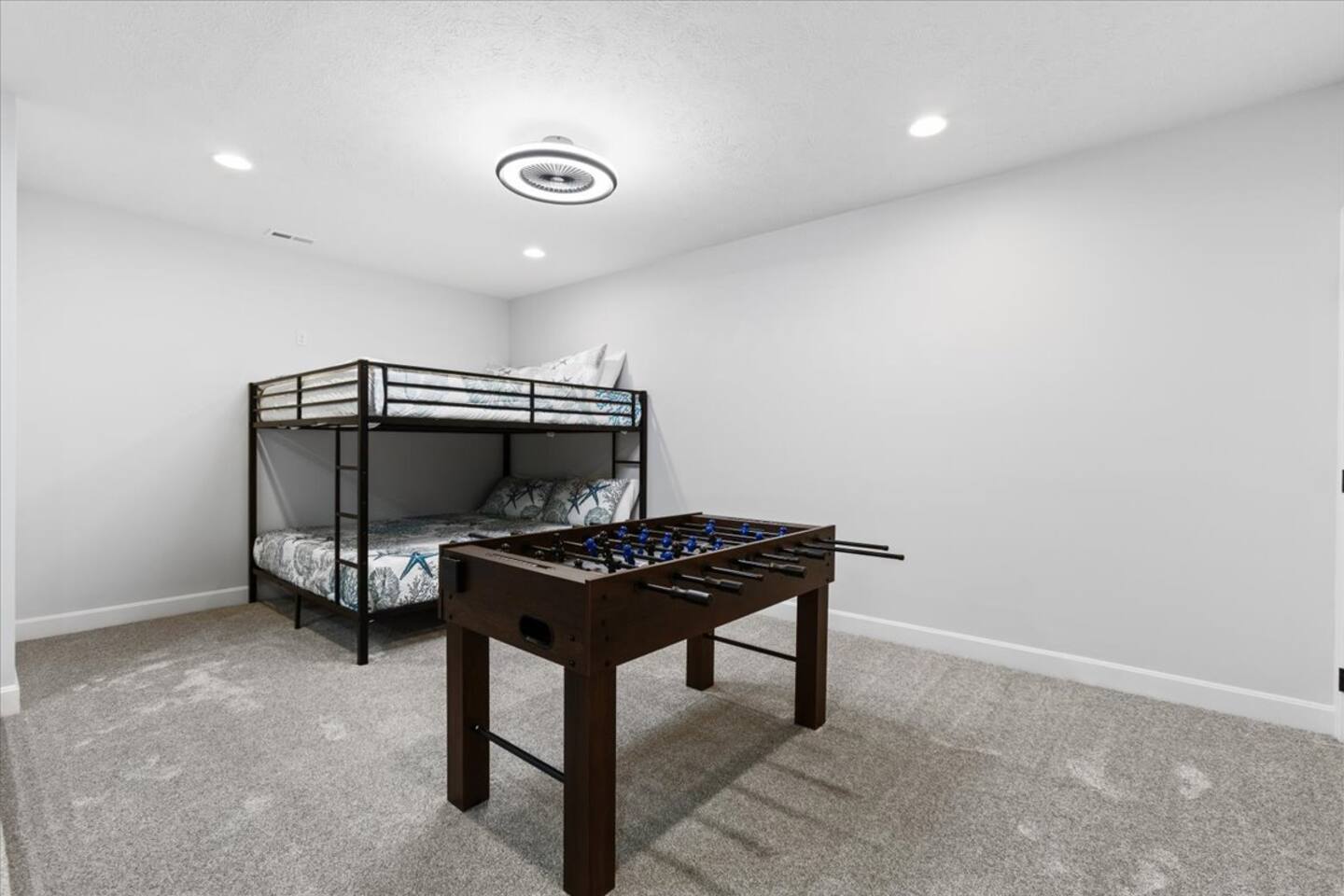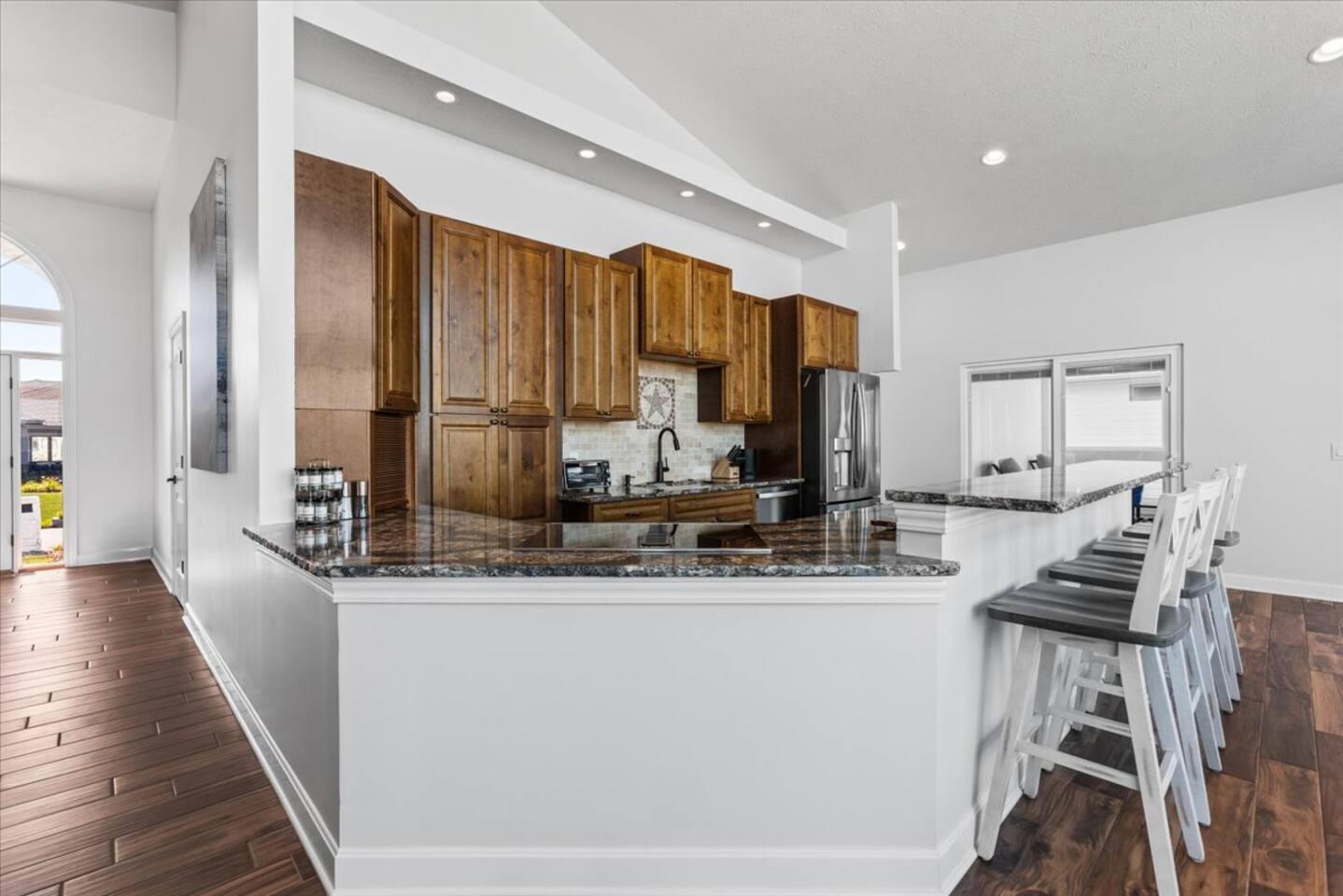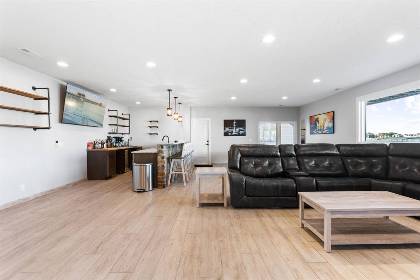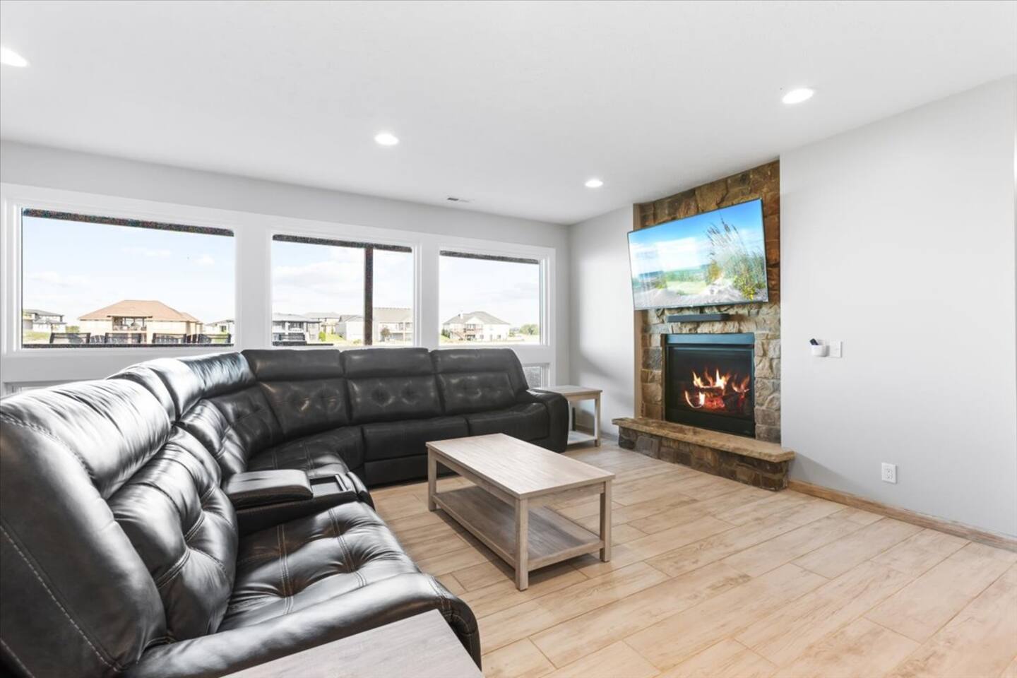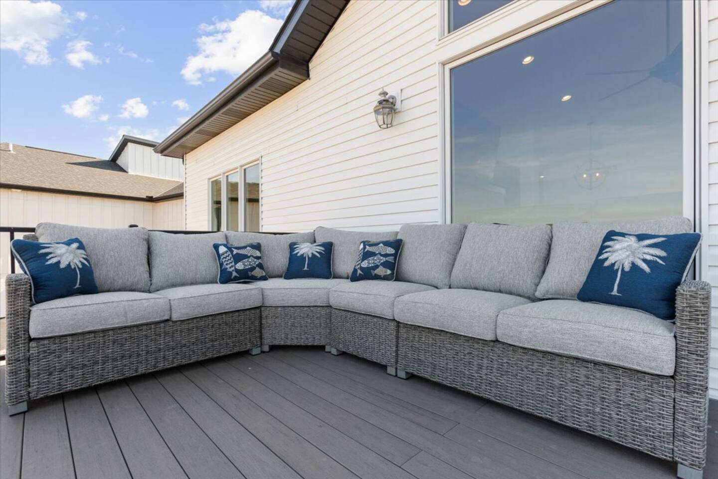 The house was designed with entertaining in mind! 4,200 sq ft Million dollar+ mansion in a safe gated community for your whole family to enjoy! Minutes away from tons of attractions like Mahoney State Park, Iron Horse, Quarry Oaks, the SAC Museum, and the Wildlife Safari Park! Conveniently located in-between Omaha and Lincoln! ALL KING BEDS! Yes, every bedroom has comfortable brand new king beds! Even the bunk beds are kings! The house was recently remodeled with all new paint, carpet, showers, furniture, fixtures, etc. Right when you walk in you'll notice the spacious tall ceilings and open floor plan with HUGE windows showcasing the amazing lake views! Every living room is furnished with a spacious L shaped sectional, smart tv, and Sonos sound system. The kitchen is equipped with high end appliances and all of the dishes and appliances you'll need to cook a big meal for the family! There is also enough kitchen seating for 11! The sun room boasts amazing lake views and great new furniture to enjoy your morning coffee! Downstairs you will find a huge living room with L shaped sectional, pool table, arcade game table, full Sonos sound, full wet bar with its own 75" tv, mini fridge, theatre room with reclining theatre seating for 6 and 100" tv with Sonos sound and sub! (alcohol not included with any rental) The entire house is equipped with Sonos sound. Including two Sonos Moves, that can be taken outside! Outside on the back deck you will find an outdoor dining table for 6 with sun shade, lounge chairs, ample outdoor seating including a huge outdoor L shaped couch! Under the deck and in the back yard you will find a 5 person hot tub, outdoor kitchen including propane grill, another 6 person dining table, gas fire pit, deck chairs, bar chairs, bag toss game, washer toss game, and ladder ball game! Bedrooms: Bedroom 1: Master bedroom on main level is huge and equipped with a king bed, dresser, 55" smart tv, ceiling fan and floor fan, huge en suite bathroom with heated floors and Jacuzzi tub and walk in shower plus a massive walk in closet! Bedroom 2: King bedroom on main level. Equipped with a 55" smart tv, ceiling fan, floor fan, and a closet for hanging clothes. Bedroom 3: King large bedroom downstairs. Equipped with 55' tv, dresser, two closets, ceiling fan, and floor fan. Bedroom 4: California King bunk beds in a room with the theater and the foosball table! Ceiling fan and floor fan as well! Come check out the amazing LAKE VIEWS! --- (Guests cannot use the lake. This is an HOA rule. Guests cannot swim or step foot in the lake. You may still use the back yard, just not the lake. Do not book this house if you want lake access. Thank you for understanding.) * A security deposit of $500 will be due immediately after booking. If nothing is broken, damaged, or missing, this is refunded within 72 hours of checkout minus a $50 processing fee.