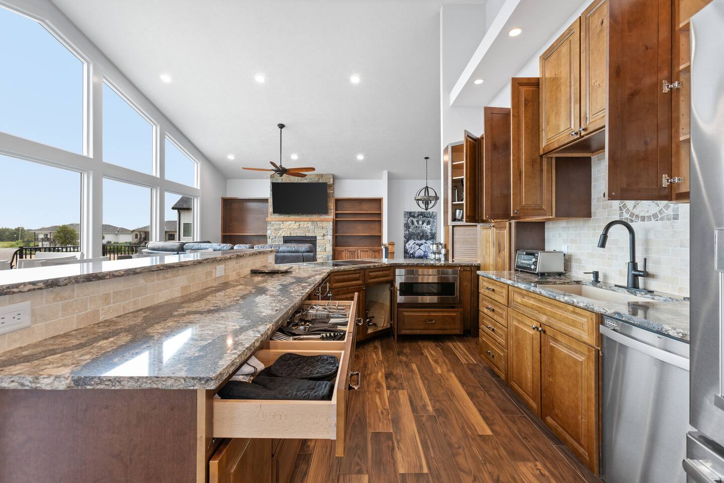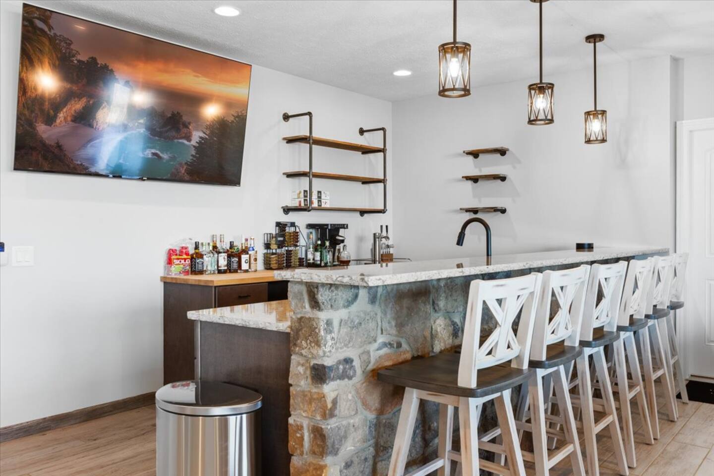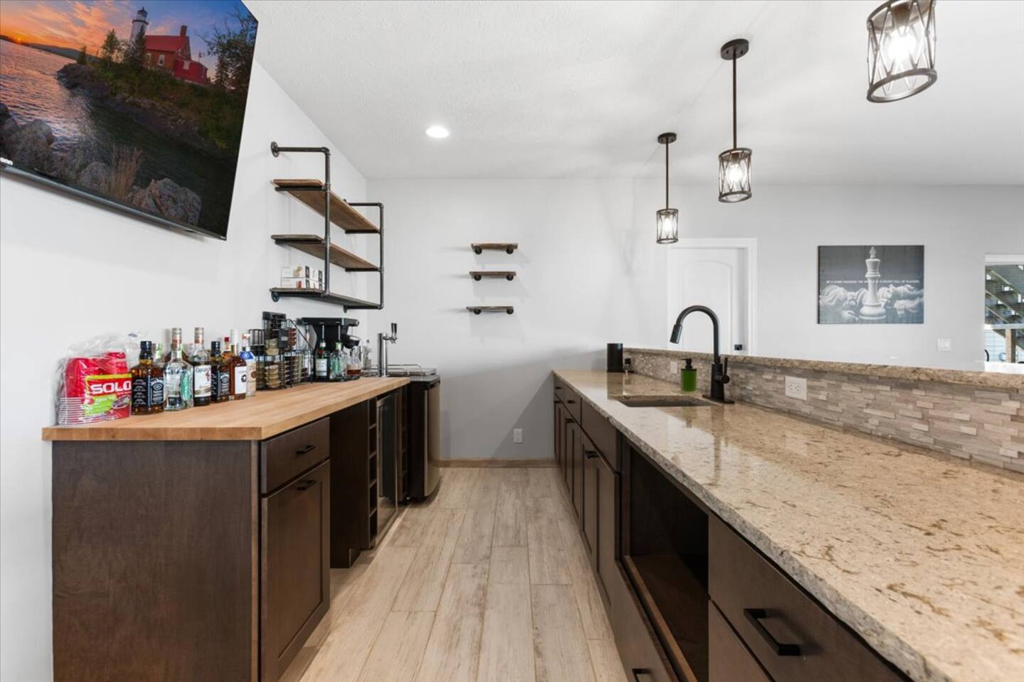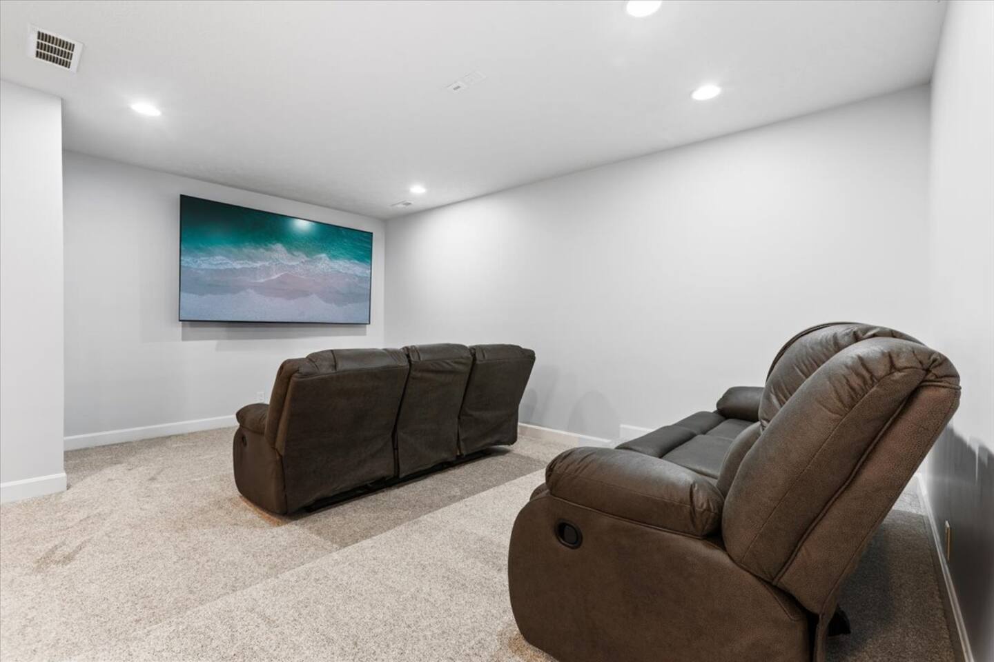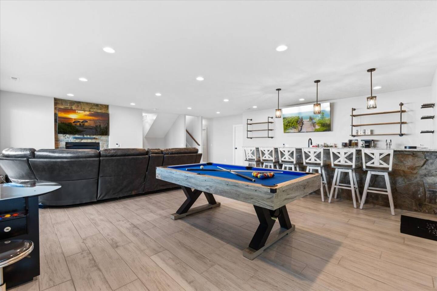 The house was designed with entertaining in mind! 4,200 sq ft Million dollar+ mansion in a safe gated community for your whole family to enjoy! Minutes away from tons of attractions like Mahoney State Park, Iron Horse, Quarry Oaks, the SAC Museum, and the Wildlife Safari Park! Conveniently located in-between Omaha and Lincoln! ALL KING BEDS! Yes, every bedroom has comfortable brand new king beds! Even the bunk beds are kings! The house was recently remodeled with all new paint, carpet, showers, furniture, fixtures, etc. Right when you walk in you'll notice the spacious tall ceilings and open floor plan with HUGE windows showcasing the amazing lake views! Every living room is furnished with a spacious L shaped sectional, smart tv, and Sonos sound system. The kitchen is equipped with high end appliances and all of the dishes and appliances you'll need to cook a big meal for the family! There is also enough kitchen seating for 11! The sun room boasts amazing lake views and great new furniture to enjoy your morning coffee! Downstairs you will find a huge living room with L shaped sectional, pool table, arcade game table, full Sonos sound, full wet bar with its own 75" tv, mini fridge, theatre room with reclining theatre seating for 6 and 100" tv with Sonos sound and sub! (alcohol not included with any rental) The entire house is equipped with Sonos sound. Including two Sonos Moves, that can be taken outside! Outside on the back deck you will find an outdoor dining table for 6 with sun shade, lounge chairs, ample outdoor seating including a huge outdoor L shaped couch! Under the deck and in the back yard you will find a 5 person hot tub, outdoor kitchen including propane grill, another 6 person dining table, gas fire pit, deck chairs, bar chairs, bag toss game, washer toss game, and ladder ball game! Bedrooms: Bedroom 1: Master bedroom on main level is huge and equipped with a king bed, dresser, 55" smart tv, ceiling fan and floor fan, huge en suite bathroom with heated floors and Jacuzzi tub and walk in shower plus a massive walk in closet! Bedroom 2: King bedroom on main level. Equipped with a 55" smart tv, ceiling fan, floor fan, and a closet for hanging clothes. Bedroom 3: King large bedroom downstairs. Equipped with 55' tv, dresser, two closets, ceiling fan, and floor fan. Bedroom 4: California King bunk beds in a room with the theater and the foosball table! Ceiling fan and floor fan as well! Come check out the amazing LAKE VIEWS! --- (Guests cannot use the lake. This is an HOA rule. Guests cannot swim or step foot in the lake. You may still use the back yard, just not the lake. Do not book this house if you want lake access. Thank you for understanding.) * A security deposit of $500 will be due immediately after booking. If nothing is broken, damaged, or missing, this is refunded within 72 hours of checkout minus a $50 processing fee.