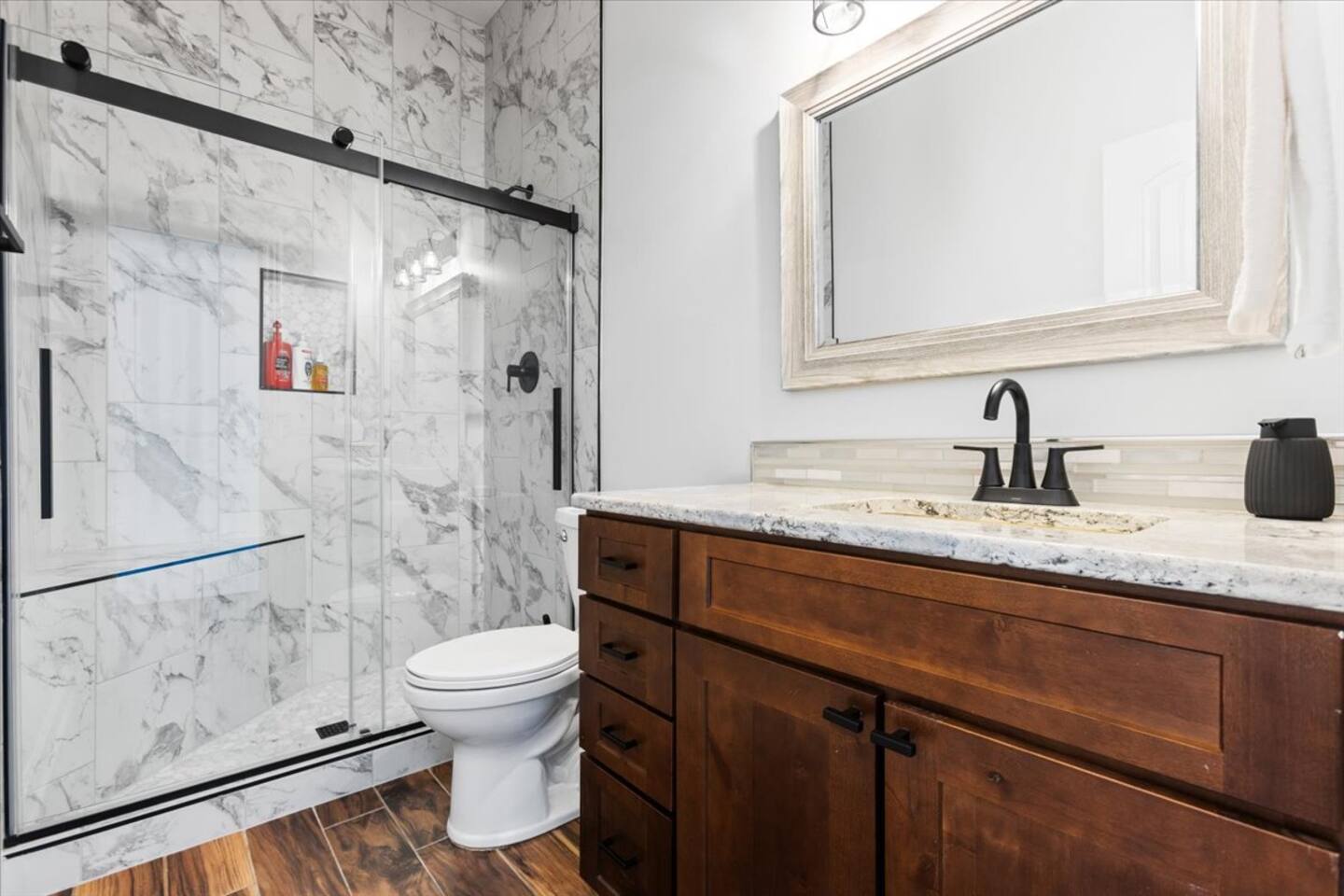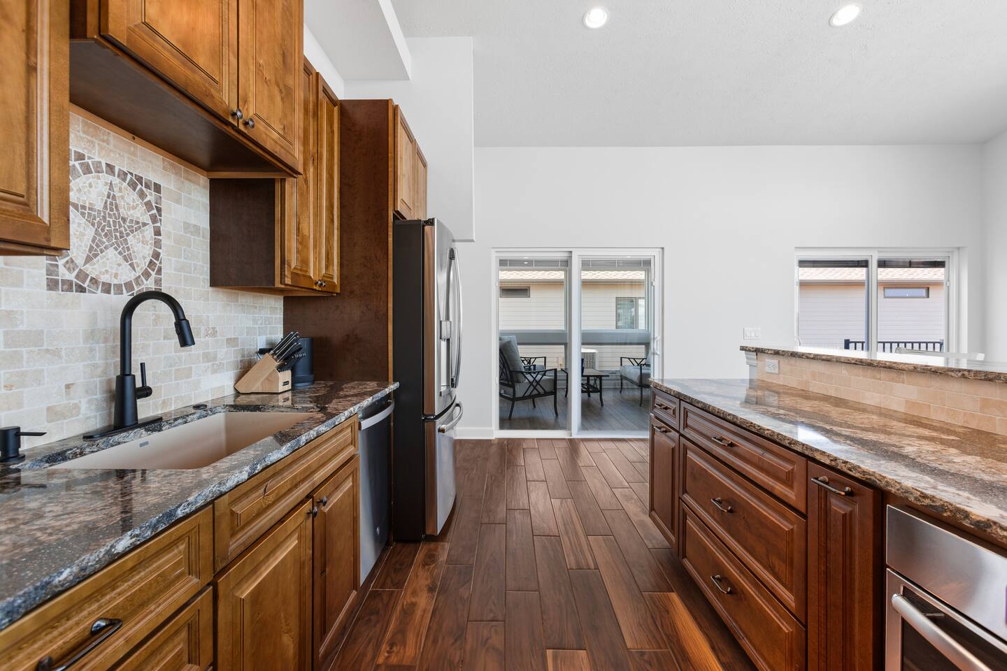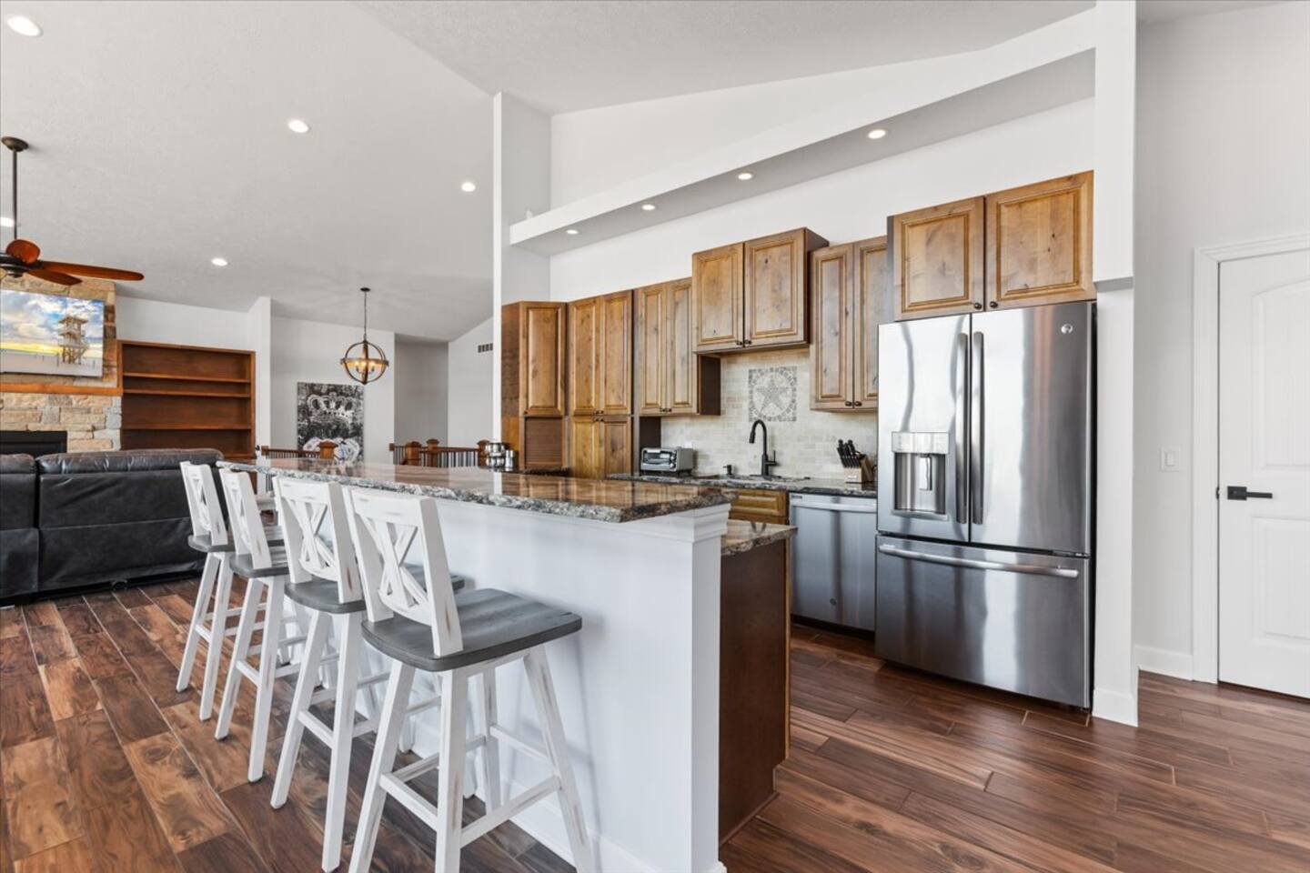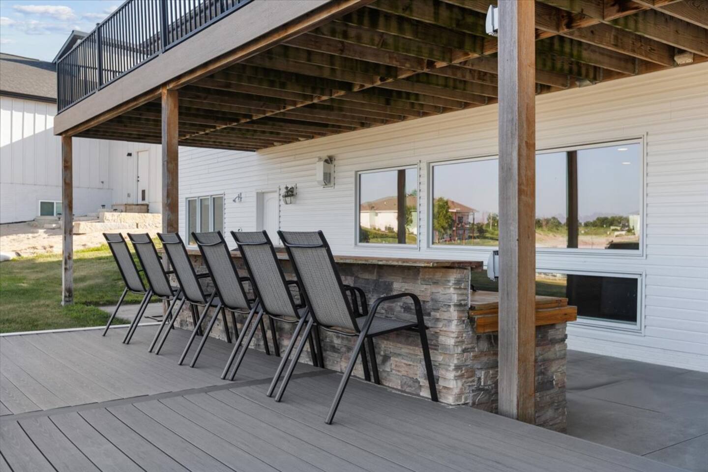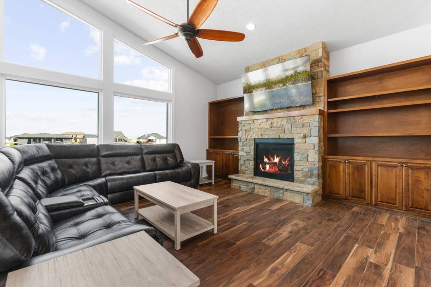 The house was designed with entertaining in mind! 4,200 sq ft Million dollar+ mansion in a safe gated community for your whole family to enjoy! Minutes away from tons of attractions like Mahoney State Park, Iron Horse, Quarry Oaks, the SAC Museum, and the Wildlife Safari Park! Conveniently located in-between Omaha and Lincoln! ALL KING BEDS! Yes, every bedroom has comfortable brand new king beds! Even the bunk beds are kings! The house was recently remodeled with all new paint, carpet, showers, furniture, fixtures, etc. Right when you walk in you'll notice the spacious tall ceilings and open floor plan with HUGE windows showcasing the amazing lake views! Every living room is furnished with a spacious L shaped sectional, smart tv, and Sonos sound system. The kitchen is equipped with high end appliances and all of the dishes and appliances you'll need to cook a big meal for the family! There is also enough kitchen seating for 11! The sun room boasts amazing lake views and great new furniture to enjoy your morning coffee! Downstairs you will find a huge living room with L shaped sectional, pool table, arcade game table, full Sonos sound, full wet bar with its own 75" tv, mini fridge, theatre room with reclining theatre seating for 6 and 100" tv with Sonos sound and sub! (alcohol not included with any rental) The entire house is equipped with Sonos sound. Including two Sonos Moves, that can be taken outside! Outside on the back deck you will find an outdoor dining table for 6 with sun shade, lounge chairs, ample outdoor seating including a huge outdoor L shaped couch! Under the deck and in the back yard you will find a 5 person hot tub, outdoor kitchen including propane grill, another 6 person dining table, gas fire pit, deck chairs, bar chairs, bag toss game, washer toss game, and ladder ball game! Bedrooms: Bedroom 1: Master bedroom on main level is huge and equipped with a king bed, dresser, 55" smart tv, ceiling fan and floor fan, huge en suite bathroom with heated floors and Jacuzzi tub and walk in shower plus a massive walk in closet! Bedroom 2: King bedroom on main level. Equipped with a 55" smart tv, ceiling fan, floor fan, and a closet for hanging clothes. Bedroom 3: King large bedroom downstairs. Equipped with 55' tv, dresser, two closets, ceiling fan, and floor fan. Bedroom 4: California King bunk beds in a room with the theater and the foosball table! Ceiling fan and floor fan as well! Come check out the amazing LAKE VIEWS! --- (Guests cannot use the lake. This is an HOA rule. Guests cannot swim or step foot in the lake. You may still use the back yard, just not the lake. Do not book this house if you want lake access. Thank you for understanding.) * A security deposit of $500 will be due immediately after booking. If nothing is broken, damaged, or missing, this is refunded within 72 hours of checkout minus a $50 processing fee.
