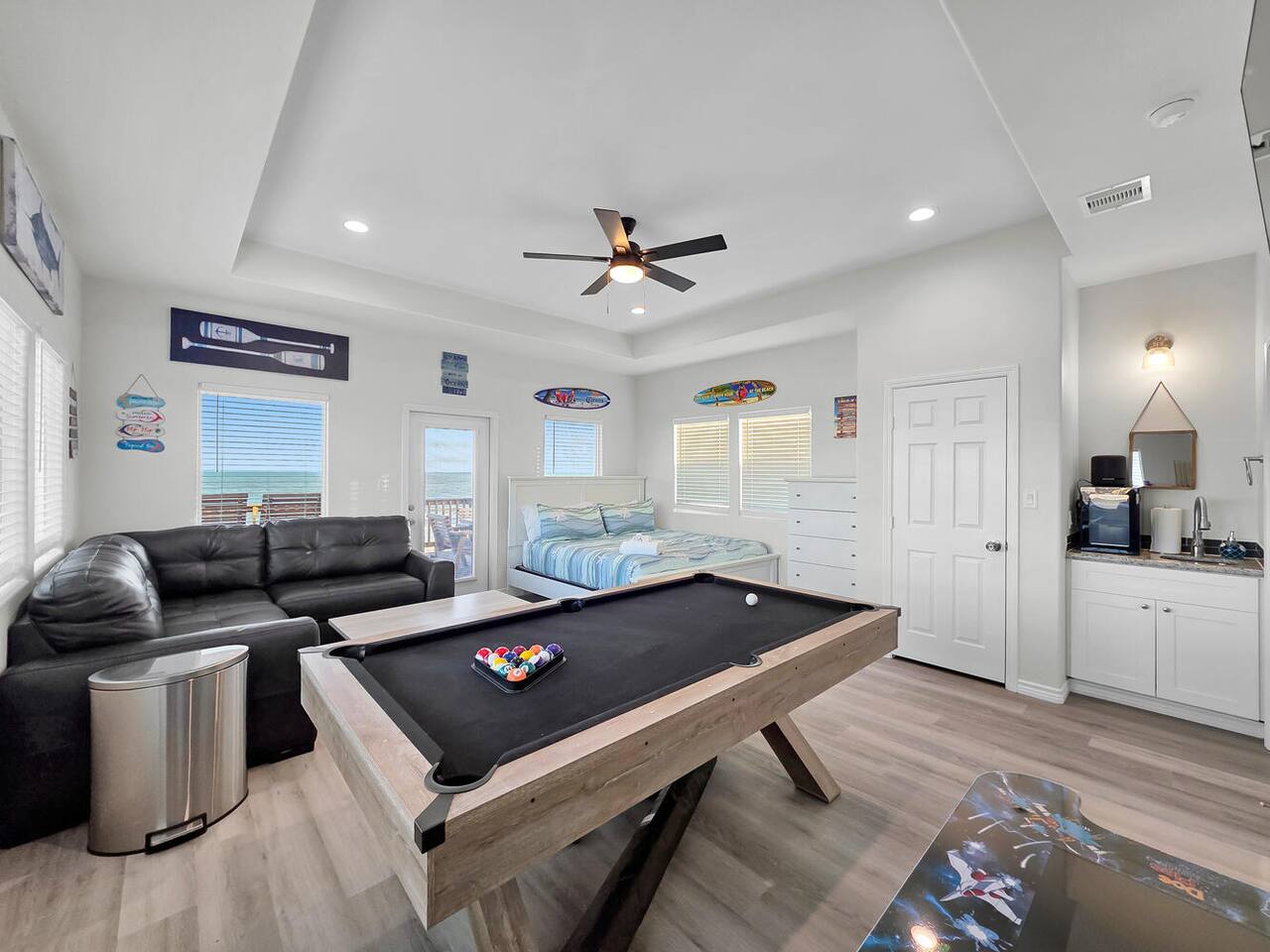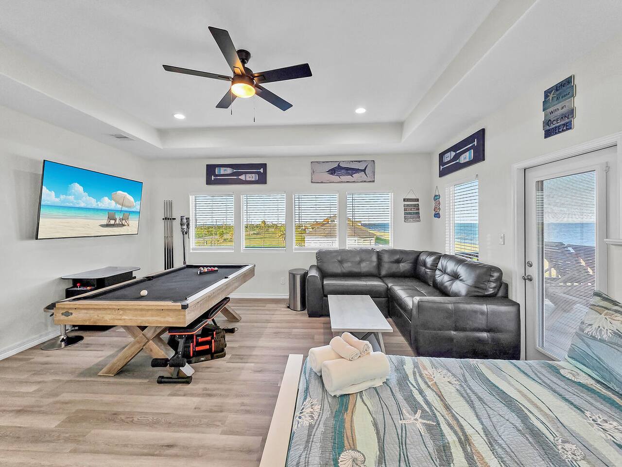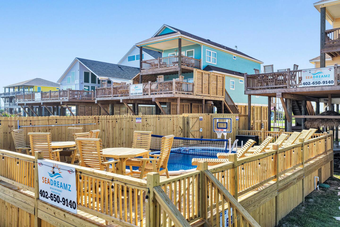 Seadreamz is recently remodeled and is mainly BRAND NEW! The home is equipped with a cargo lift, which is perfect for limited mobility guests. It also helps get your luggage into the home! Seadreamz has 5 total bedrooms - 4 King bedrooms - 2 king master en suite bedrooms - 1 queen bed x 8 en suite bedroom and 12 beds total! 55" smart tvs in all bedrooms. 75" smart tvs in the living rooms. 2 living rooms with plenty of seating and a game room! Fully stocked kitchen with everything you'll need to cook huge meals for many! Kitchen has oven, refrigerator, 2 ice makers (1 in freezers plus 1 stand alone on the counter), microwave, and dishwasher. The home is equipped with TWO sets of washers and dryers! 2nd story game room offers amazing ocean views, as well as a 75" smart tv, mini fridge, pool table, arcade game table, and fitness equipment (treadmill, dumbbells, yoga mat, jump rope, and an ab roller). There is also a desk and chair for any business needs - located in main level bedroom! All decks are furnished with ample outdoor furniture for your lounging pleasure. The home also has two outdoor gas grills for all of your outdoor cooking needs! Under the home you will find mini putt putt, an outdoor shower, huge outdoor bar area with wifi alexa speaker, 55" outdoor tv, ping pong table, one set of bags games, one washers game, one ladder toss game, two outdoor fans, mini fridge, and plenty of outdoor seating. The entire area under the house and back yard is fully fenced for your privacy and pets! It is also beautifully landscaped with multiple palm trees! Seadreamz has one hot tub on the main deck overlooking the ocean for your soaking pleasure! The backyard is built out with an amazing outdoor firepit with 15 chairs surrounding! (Firepit wood is provided for the house). There is also a full playground set as well as a heated/cooled salt water pool over looking the ocean! The pool deck has private gates that can be locked for safety. The pool also has a removable volleyball net as well as a basketball hoop! The backyard also has private beach access. The home has outdoor security cameras but they are disarmed during each stay. There are no camera inside the home. ***Event fee sometimes applies. We offer a beach package that can be rented for $125 per night. This must be rented for the entire stay of your trip. The beach package includes sand toys, #2 10x10 outdoor canopy's, #2 Frisbees, #2 water footballs, #4 skim boards. #4 bodyboards, #20 beach chairs, and a JBL Extreme 2 portable Bluetooth speaker. We also offer a 6 seater golf cart with built in Bluetooth speakers. The golf cart can be rented for $200 per night. The golf cart must be rented for the entire stay of your trip. We would love for you to enjoy Seadreamz with your family and friends! *After booking, a rental agreement will be sent to you via email, using DocuSign, for your signature. * A security deposit of $500 will be due immediately after booking. If nothing is broken, damaged, or missing, this is refunded within 72 hours of checkout minus a $50 processing fee.